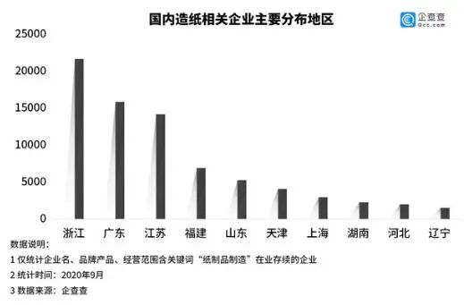 随着传统旺季的来临,近期造纸企业的降价信如雪花般飞扬,最高涨幅达500元/吨。根据该公司的数据,我国目前有88,000家与纸张相关的公司。 2019年,新注册关联公司1.2万家,同比增长43.67%;今年上半年新注册关联公司1.6万家,同比增长210%。在区域分布方面,浙江省排名第一,拥有20,000多家公司,广东,江苏,福建和山东排名2-5。